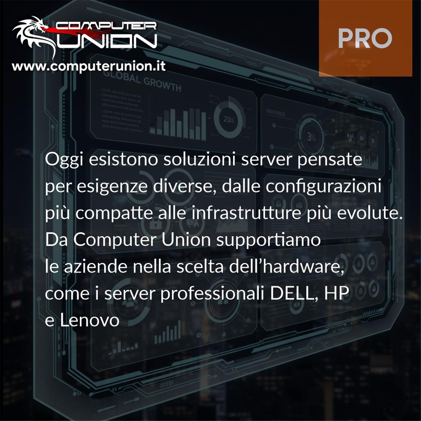 Oggi esistono soluzioni server pensate per esigenze diverse, dalle configurazioni più compatte alle infrastrutture più evolute. Da Computer Union supportiamo le aziende nella scelta dell’hardware, come i server professionali DELL, HP e Lenovo, dei computer Client, i PC UNION della linea PRO sono adatti alle aziende, viso le centinaia di installazioni in essere, ma soprattutto nella progettazione dell’intera infrastruttura: domini, servizi di rete, sicurezza, backup e gestione operativa.