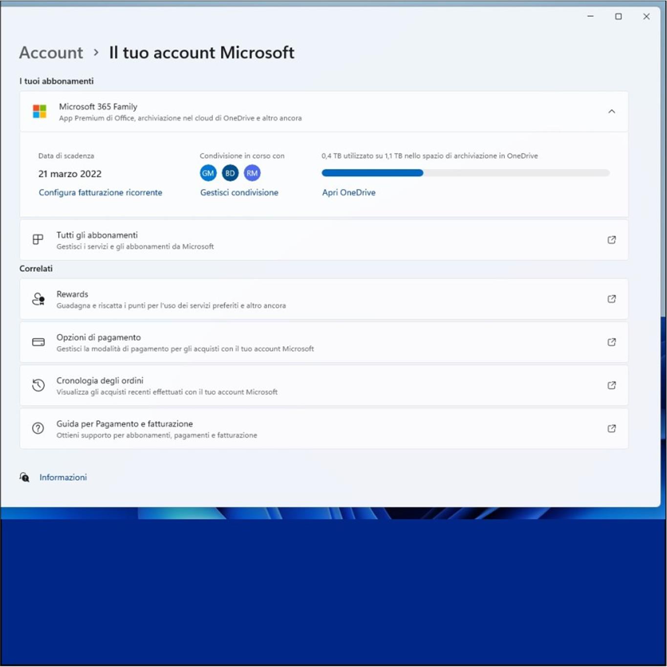Gestione dell’account Microsoft, Office e OneDrive dalle Impostazioni di Windows 11