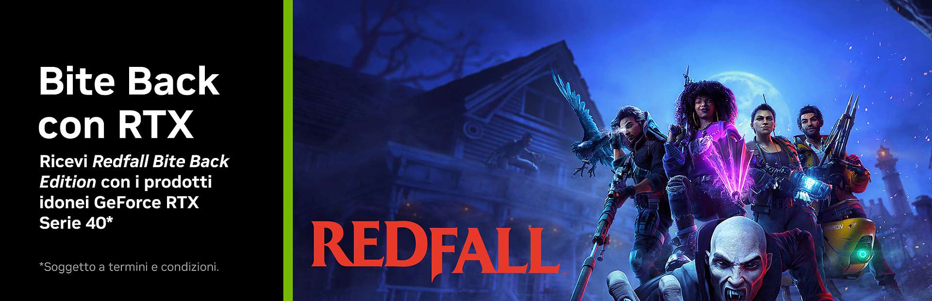 A partire dal 16 Marzo con GeForce RTX avrai il gioco Redfall Bite Back.