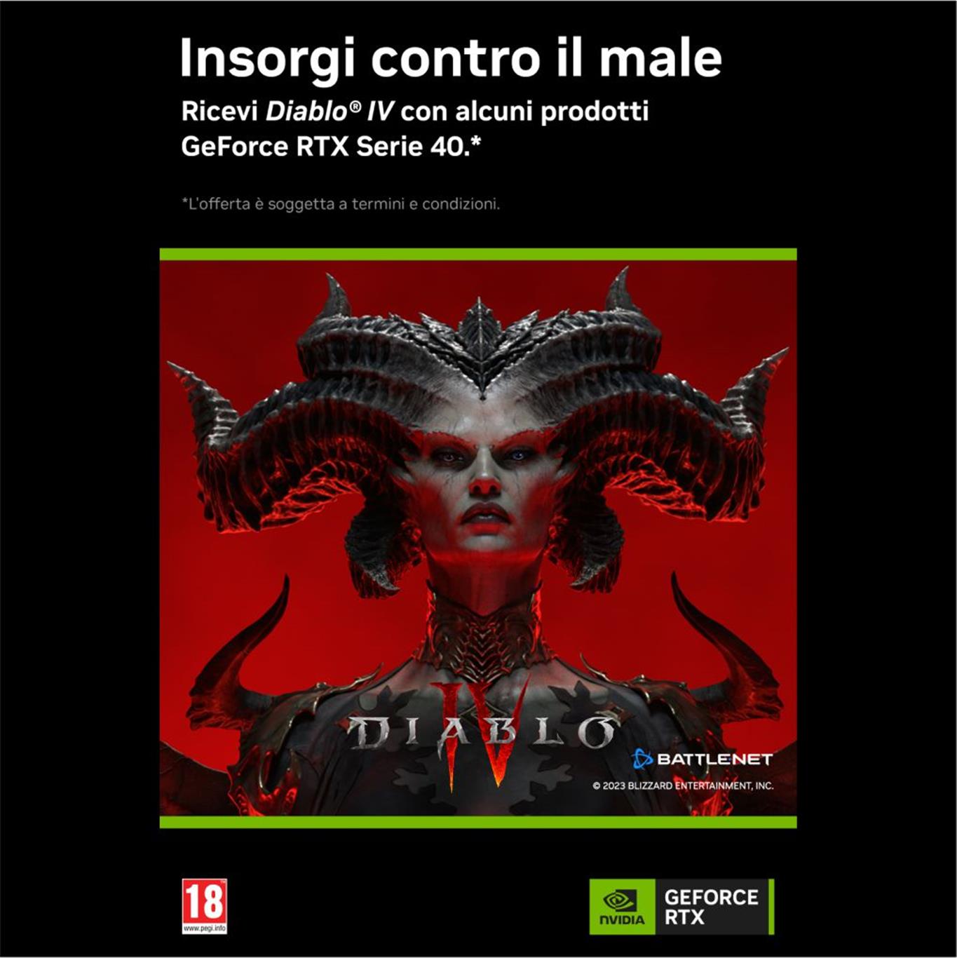 A partire dal 9 maggio 2023, per ogni scheda grafica o PC desktop dotato di scheda video NVIDIA GeForce RTX 4090, 4080, 4070 Ti e 4070 sara’ disponibile in bundle il gioco Diablo IV, uno dei titoli piu’ attesi di quest’anno!