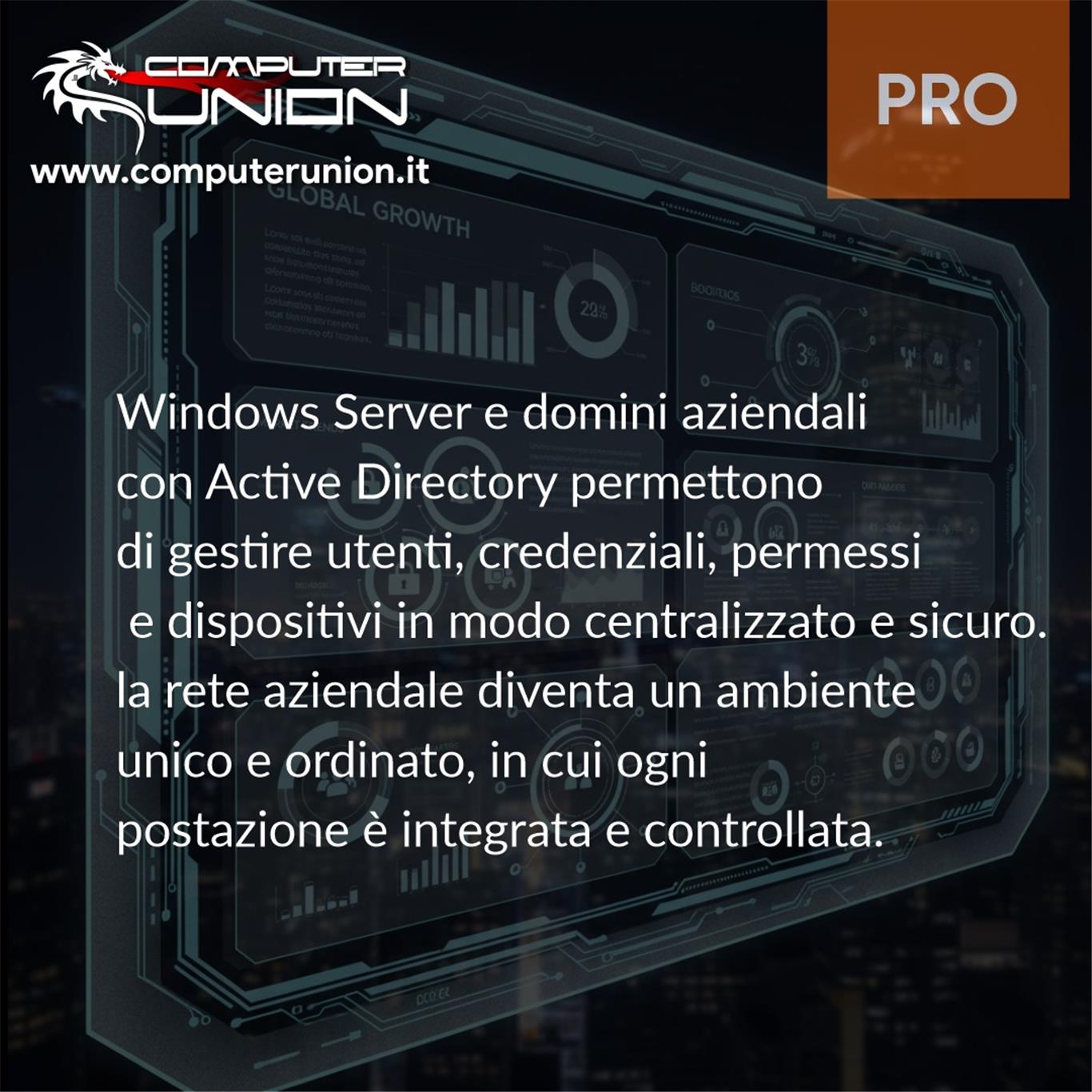 Sempre più aziende scelgono infrastrutture basate su Windows Server e domini aziendali con Active Directory, che permettono di gestire utenti, credenziali, permessi e dispositivi in modo centralizzato e sicuro. Con le piattaforme più recenti, come Windows Server 2025, la rete aziendale diventa un ambiente unico e ordinato, in cui ogni postazione è integrata e controllata, anche quando il lavoro si estende a sedi esterne o allo smart working.