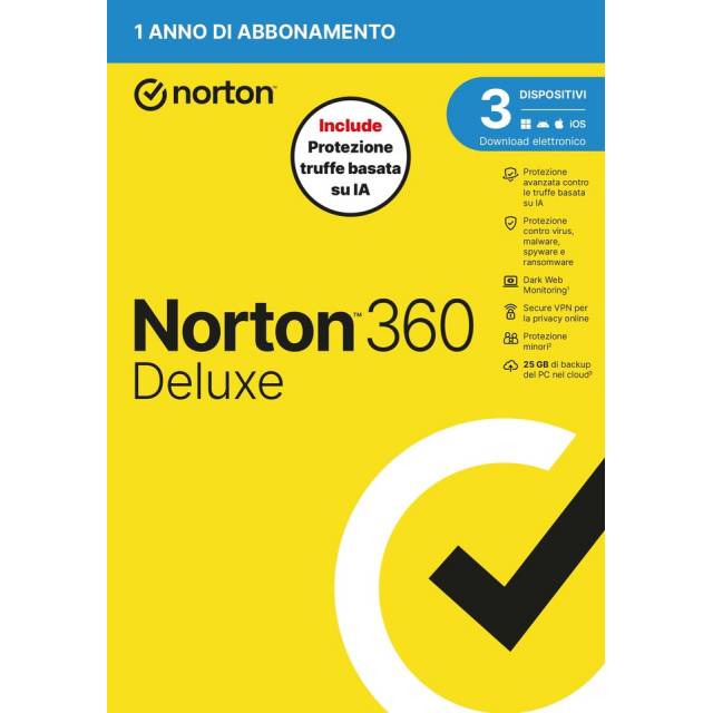 Symantec - Norton 360 Deluxe 2026 | Antivirus per 3 Dispositivi Licenza di 1 Anno ATT